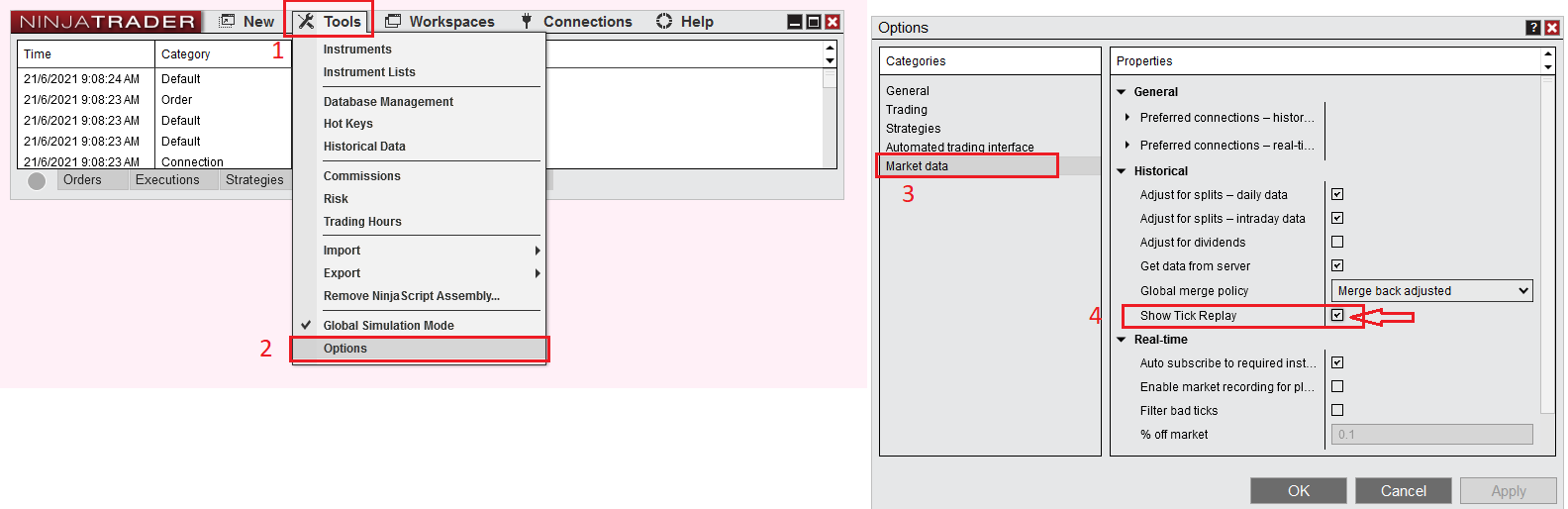 - If you do not see the Tick Replay option, please follow the steps below to enable it: (see the attached pictures below – Show Tick Replay.png)